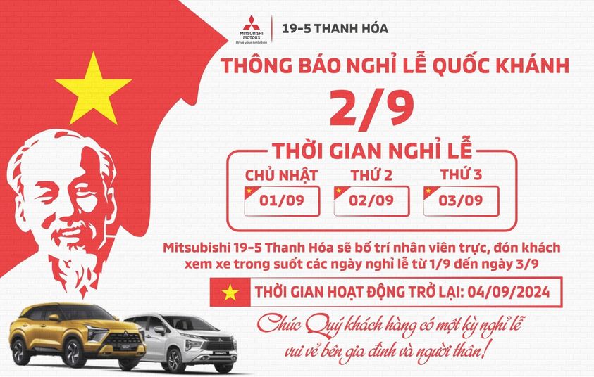 THÔNG BÁO NGHỈ LỄ QUỐC KHÁNH 2/9 Mitsubishi 19-5 Thanh Hóa trân trọng gửi đến [...]