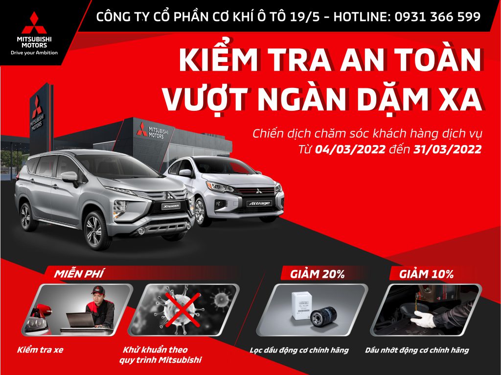 Với mục đích duy trì và nâng cao hơn nữa sự hài lòng của Quý Khách hàng cũng như đảm bảo các nhu cầu bảo dưỡng và sửa chữa xe trong quá trình sử dụng, Mitsubishi Motors Việt Nam (MMV) triển khai chương trình “Chiến Dịch Chăm Sóc Khách Hàng Dịch Vụ tháng 03 năm 2022”. Theo đó, khi Quý khách hàng đến làm bảo dưỡng tại các Nhà phân phối (NPP) ủy quyền của MMV sẽ được hưởng như ưu đãi như sau: