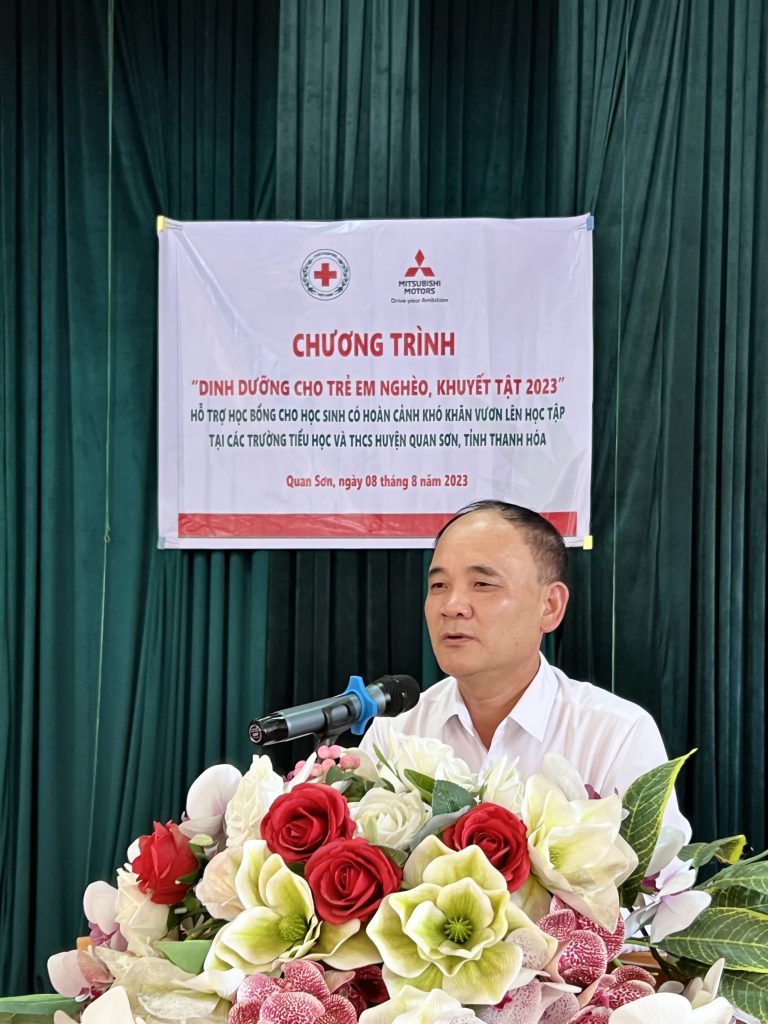 Về dự chương trình có bà Nguyễn Thị Thu Hà, Phó chủ tịch Hội CTĐ tỉnh Thanh Hoá; ông Lê Ngọc Minh, đại diện Công ty Mitsubishi; đại diện phòng Giáo dục & Đào tạo huyện Quan Sơn, Hội CTĐ huyện, các thầy giáo, cô giáo cùng các phụ huynh, các em học sinh được nhận học bổng.