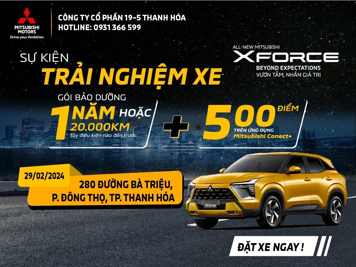 Mitsubishi Ô tô 19-5 Thanh Hóa trân trọng kính mời Quý khách hàng đến tham dự sự kiện Trãi Nghiệm & giới thiệu mẫu xe hoàn toàn mới 𝗔𝗟𝗟- 𝗡𝗘𝗪 𝗠𝗜𝗧𝗦𝗨𝗕𝗜𝗦𝗛𝗜 𝗫𝗙𝗢𝗥𝗖𝗘.